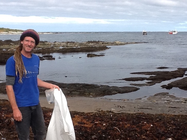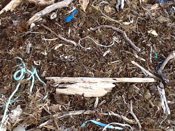 Following the rocky shoreline through a series small coves and jagged headlands of schist (a rock type), we collected the usual assortment of plastic bottles, fishing buoys, bait savers, and random plastic pieces, but as we rounded low scrubby headland into one of the larger coves along this stretch of coast we were stopped dead in our tracks.